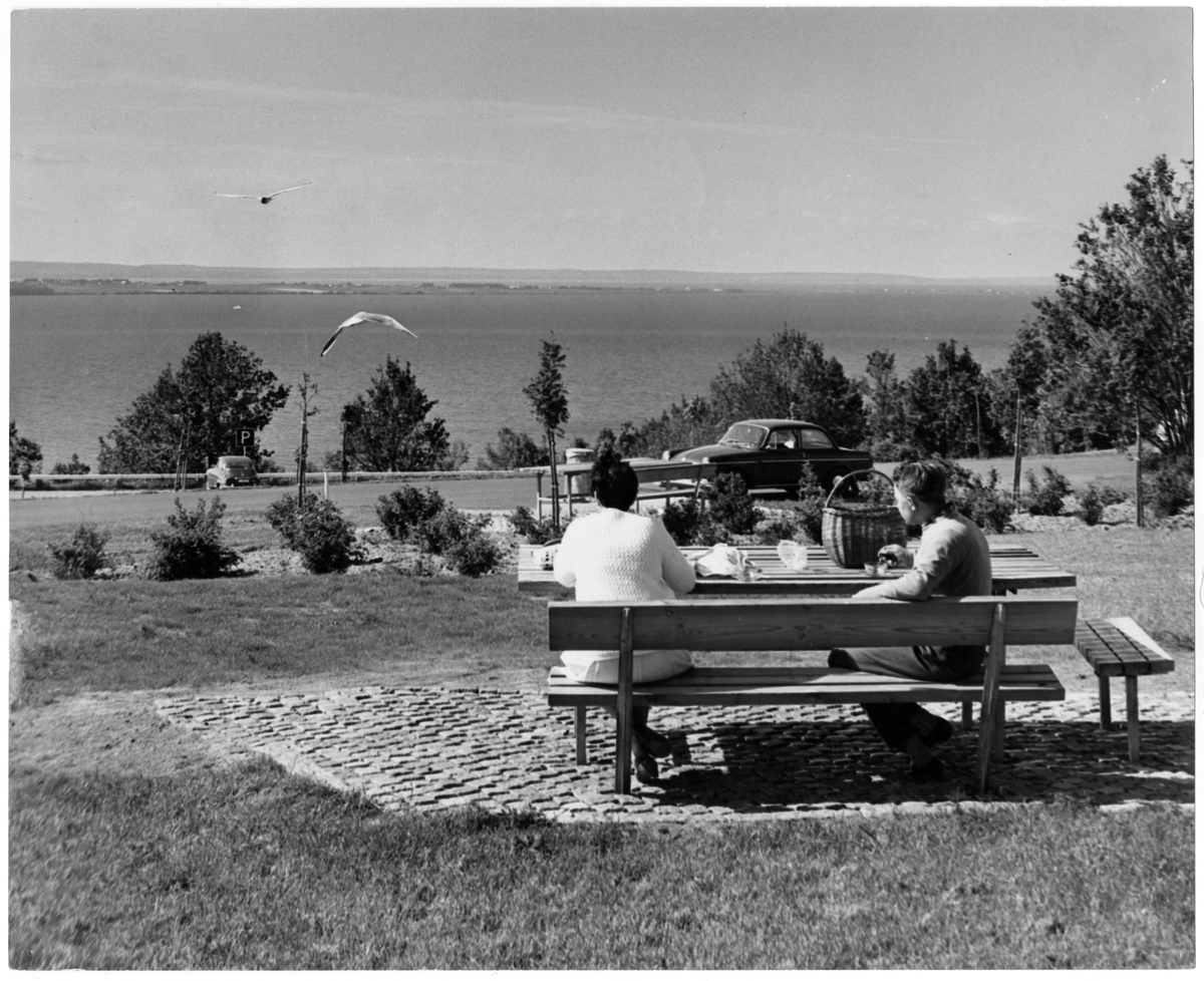 Rastplats vid Gyllene Uttern, utmed E4. Utsikt över Vättern. Länsväg 993 Jönköpings län.