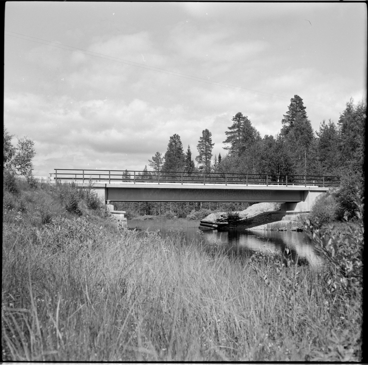 Bro över Tännån vid Styppeldammen, vägen Migvrå - Kåtilla. Nedströmsvy. Länsväg 1031 Dalarnas län.