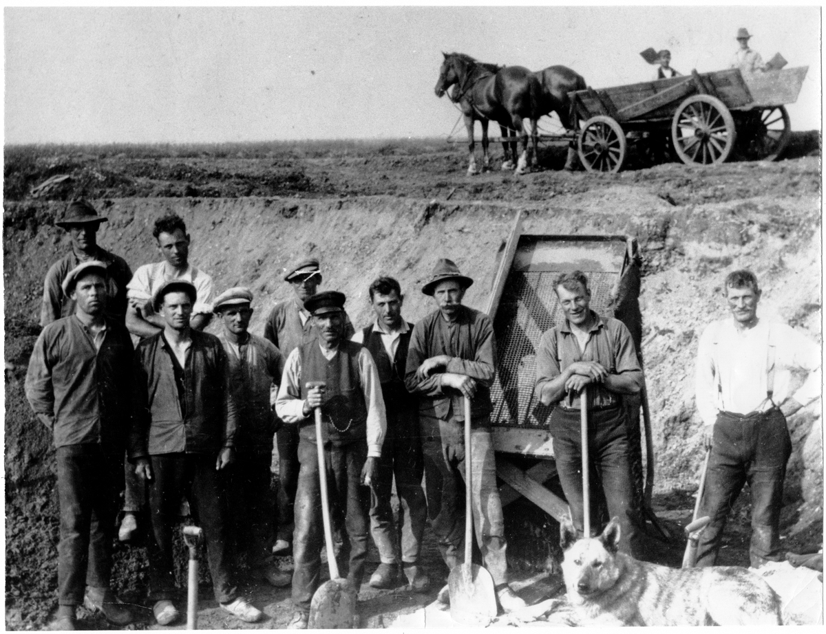 Personal från Luggude vägdistrikt vid ett vägarbete.