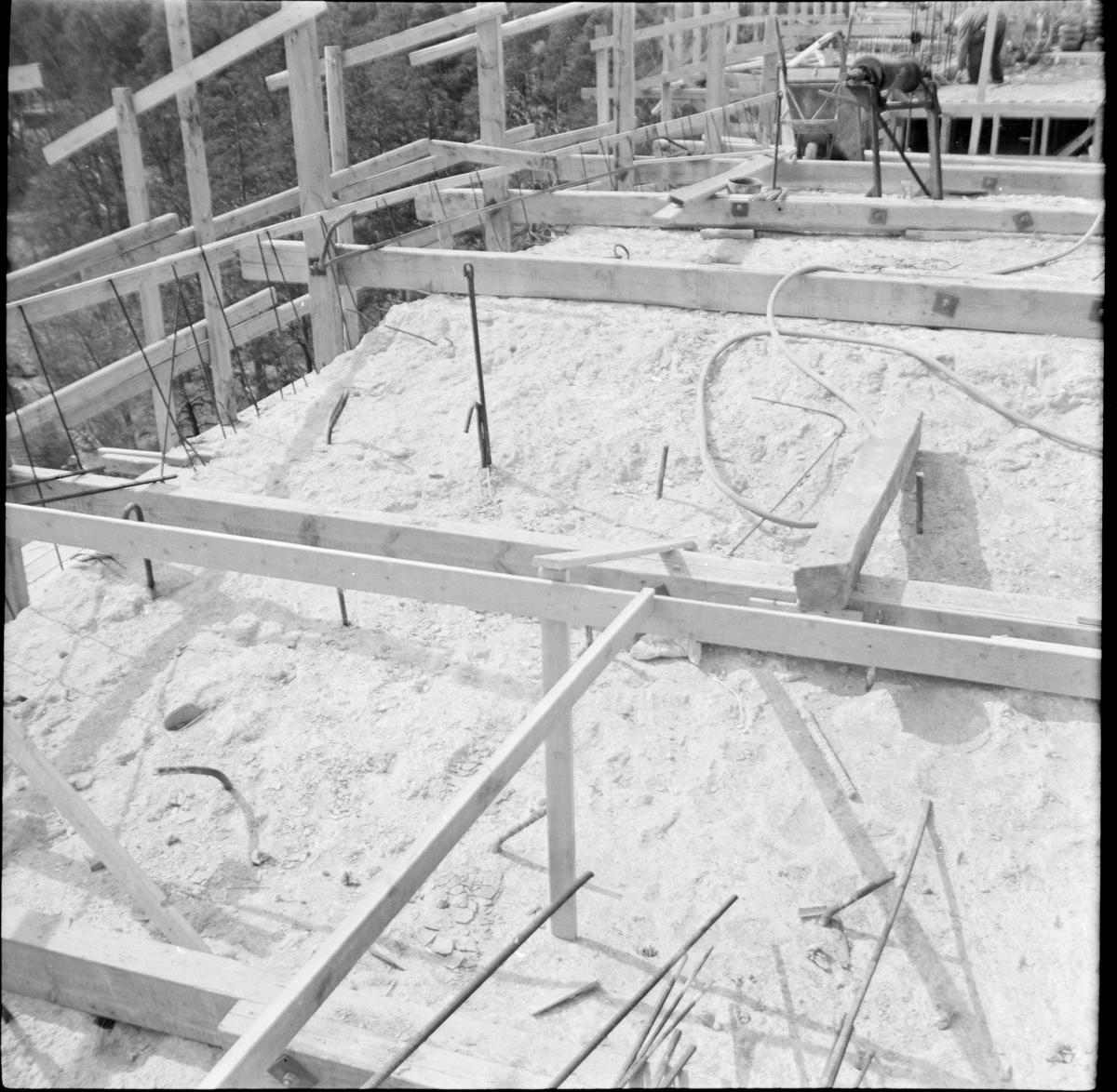 Breddning av Gamla Skurubron (den södra, ursprungliga). Länsväg 602 Stockholms län. Armeringsjärn och betonggjutning.