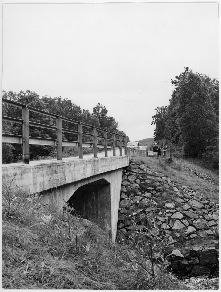Rastplats utmed Nissastigen, riksväg 26. Betongbro, sannolikt över Kilan, ett biflöde till ån Nissan.