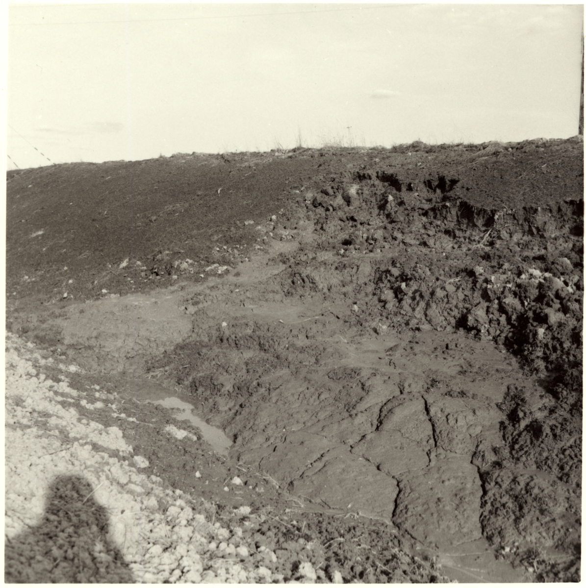Vägskador på slänt från tjällossning. Falun - Backa. Länsväg 875 Dalarnas län.