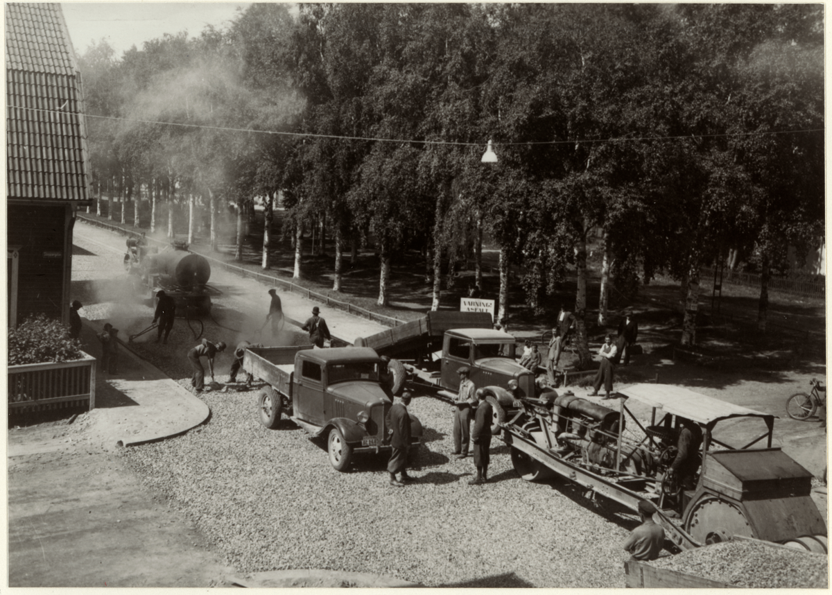 Utläggning av makadam och asfalt.