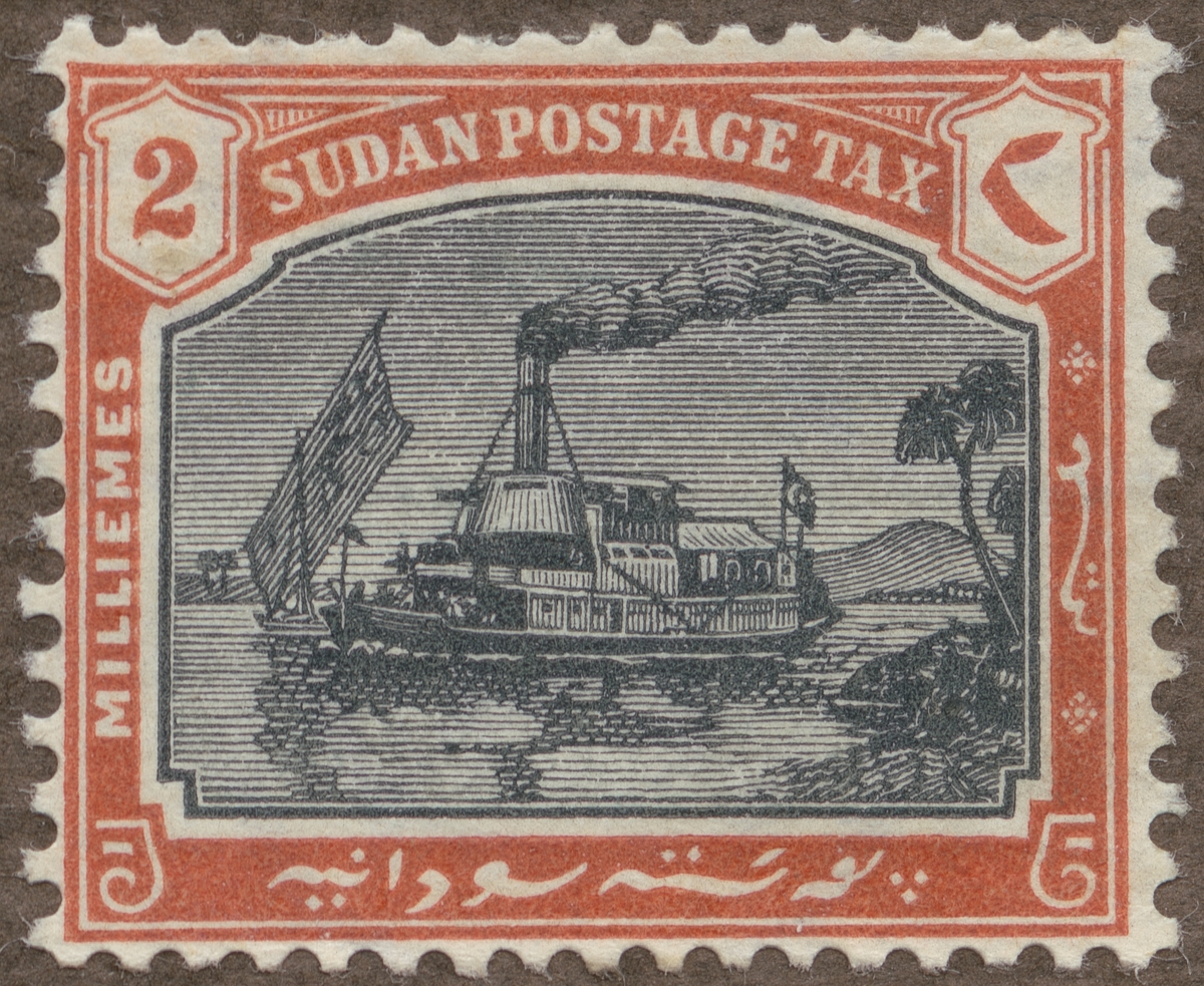 Frimärke från Sudan, 1901. Motiv av Flodångbåt
