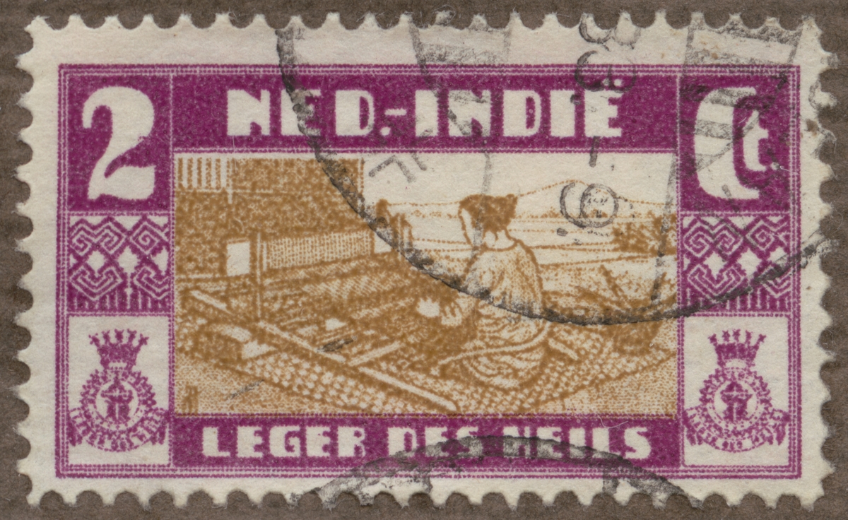 Frimärke från Nederländska Indien, 1932. Motiv av vävnadsarbete. "Till förmån för frälsningsarmén".