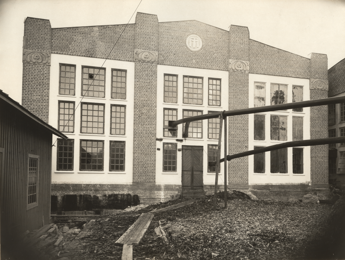 Aktiebolaget Moälvens Träsliperi. Exteriör av vedrenseriet.