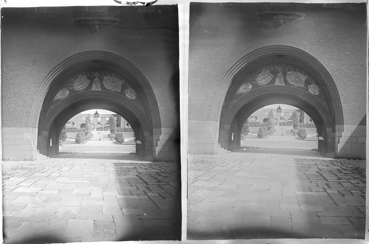 Stereonegativ med motiv av valvport vid Kungliga Tekniska Högskolan i Stockholm.