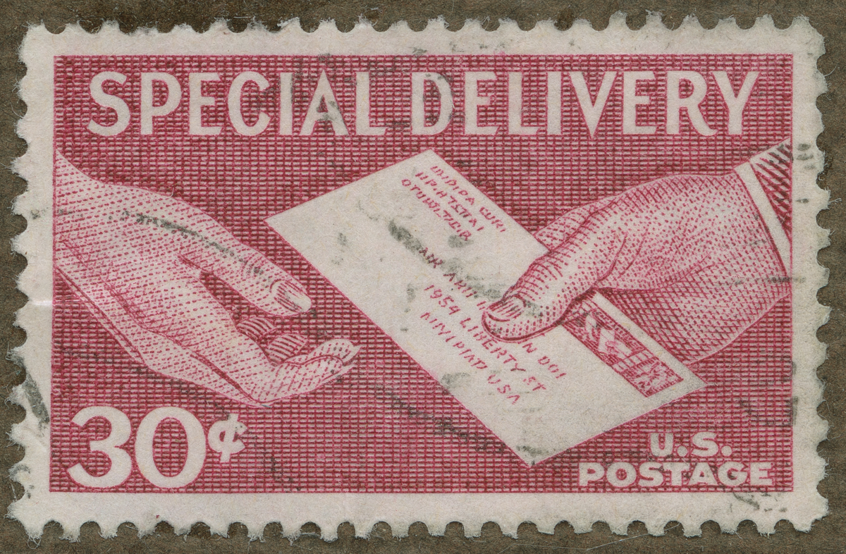 Frimärke från U.S.A., 1957. Motiv av Amerikansk expressbrev befordring Expressbrev frimärke: USA