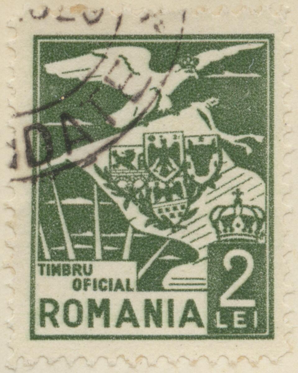 Frimärke från Rumänien, 1929. Motiv av Rumäniens Vapen -Örn- -Tjänstemärke-
