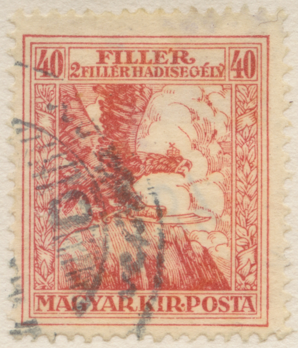 Frimärke från Ungern, 1916. Motiv av Örn (Turul) med svärd