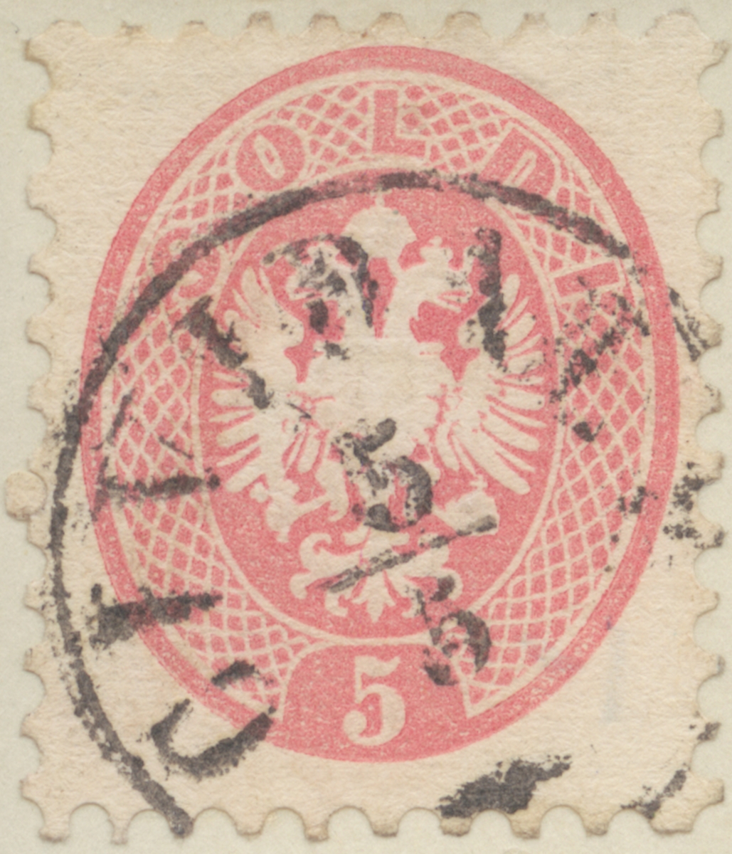 Frimärke från Österrike, 1863. Motiv av Österrikes Vapen: Dubbelörnen