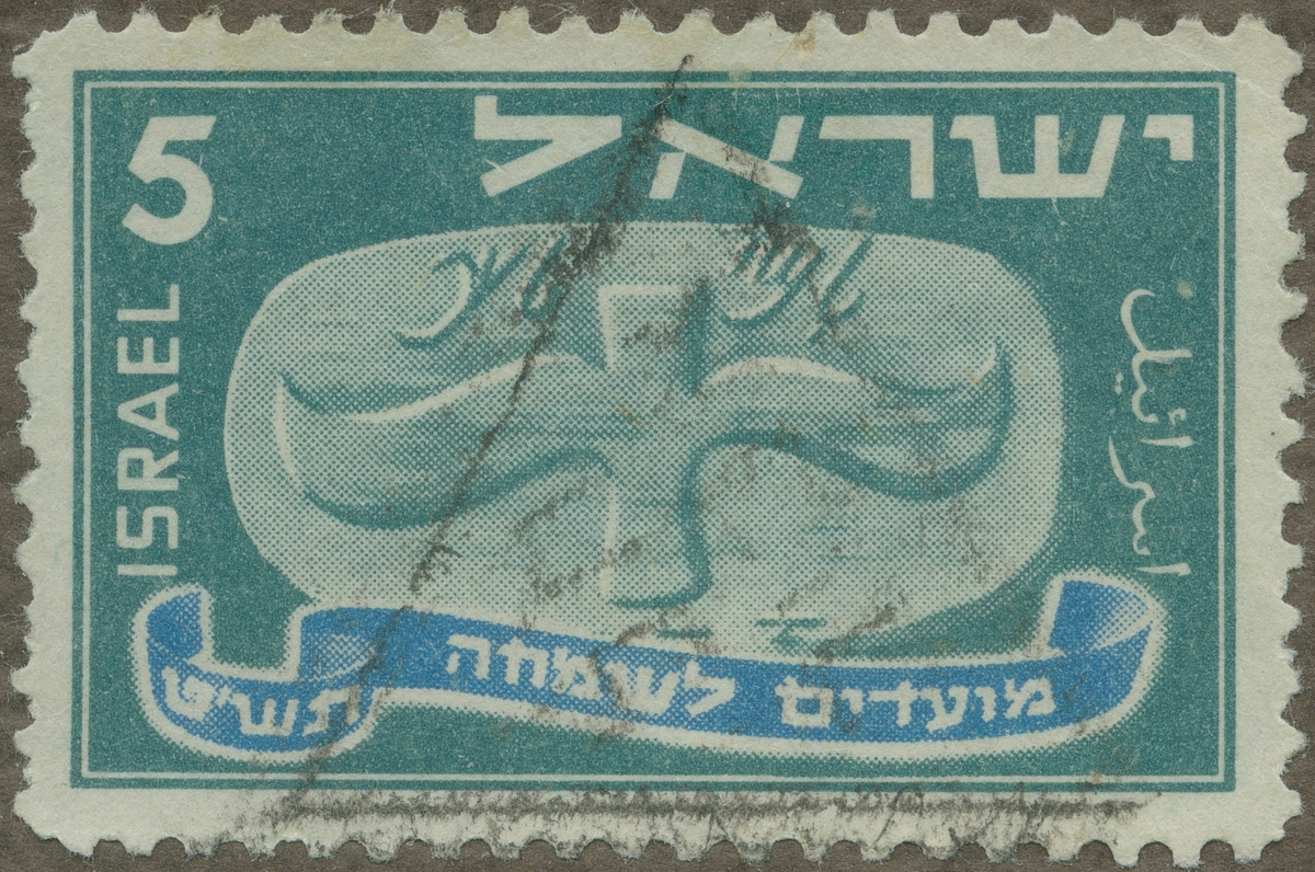 Frimärke från Israel, 1941. Motiv av Judisk textrulle -Till judiska nyåret 5709 och helgdagar-