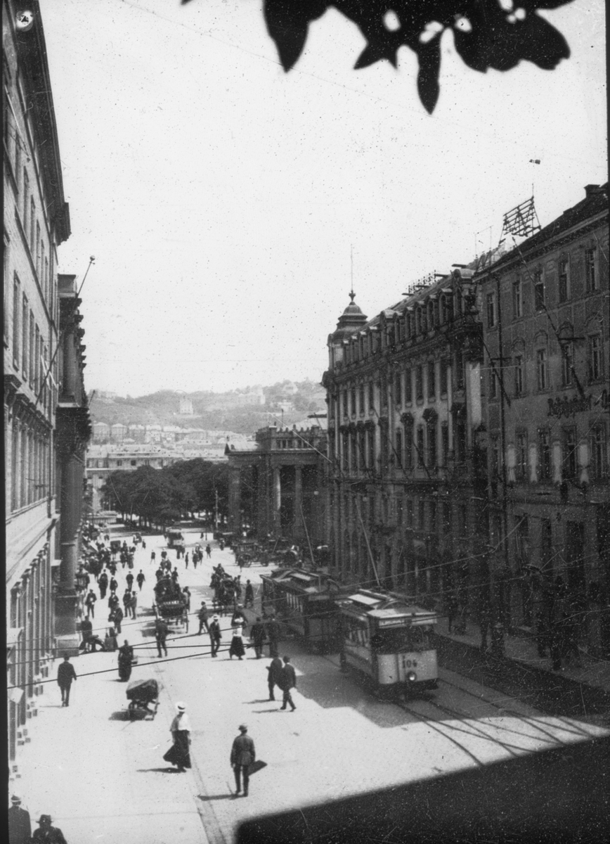 Skioptikonbild med motiv från gata i Stuttgart.