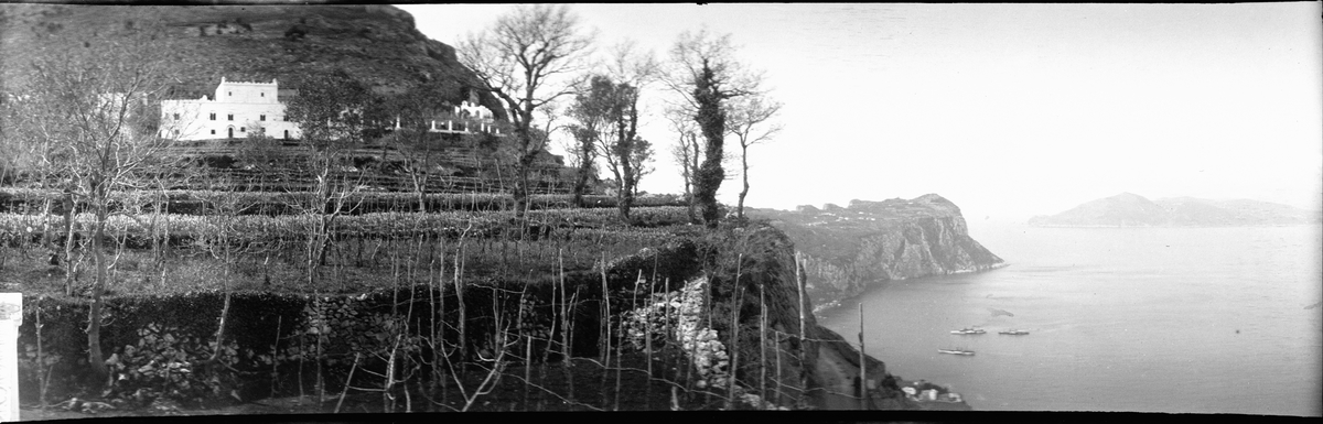 Drottning Victorias bilder. Panorama från altanen över vinodling på Capri.