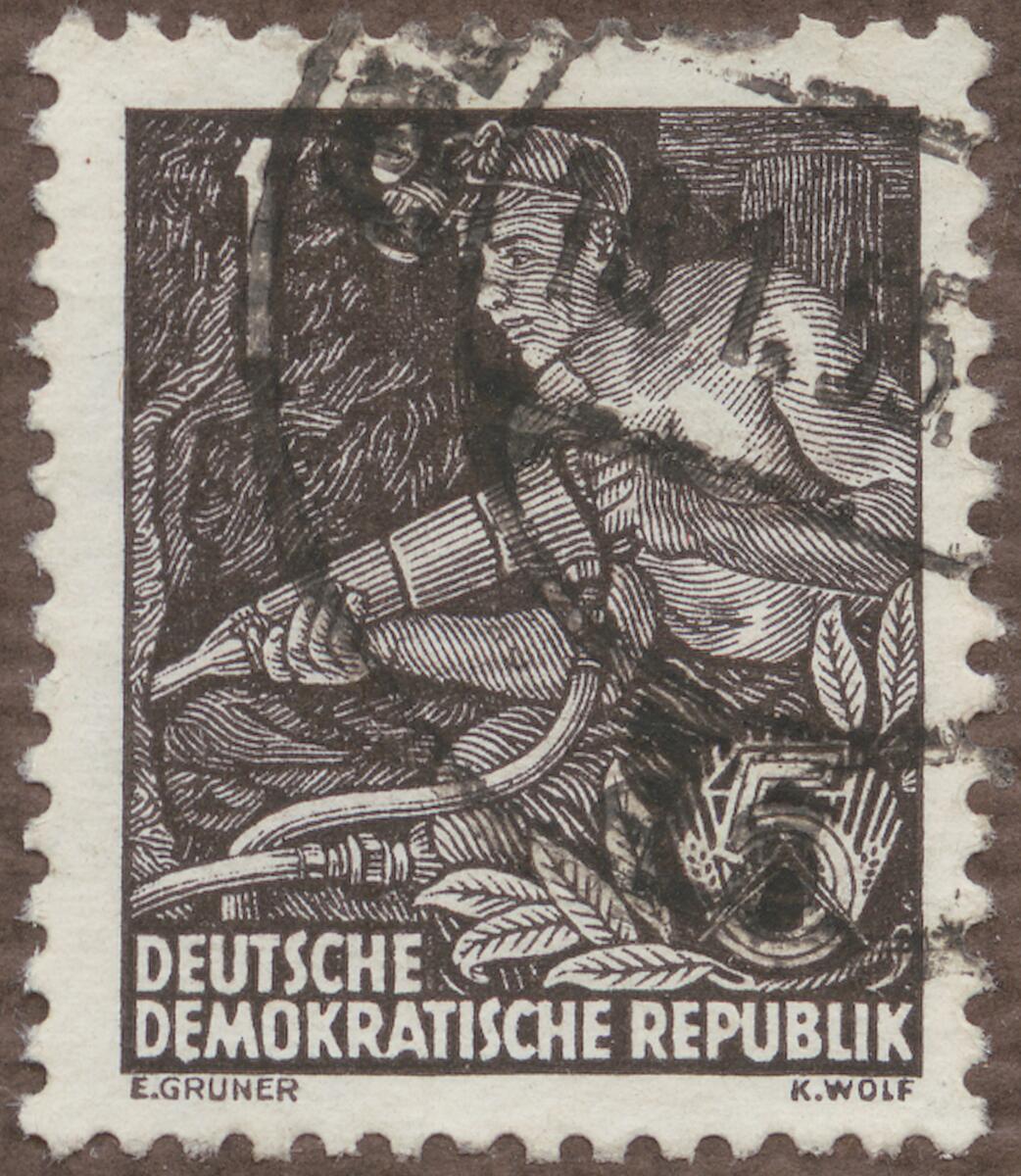 Frimärke från Östtyskland, 1953. Motiv av Tysk Bergborrare -"Serie: 5-års planen"-