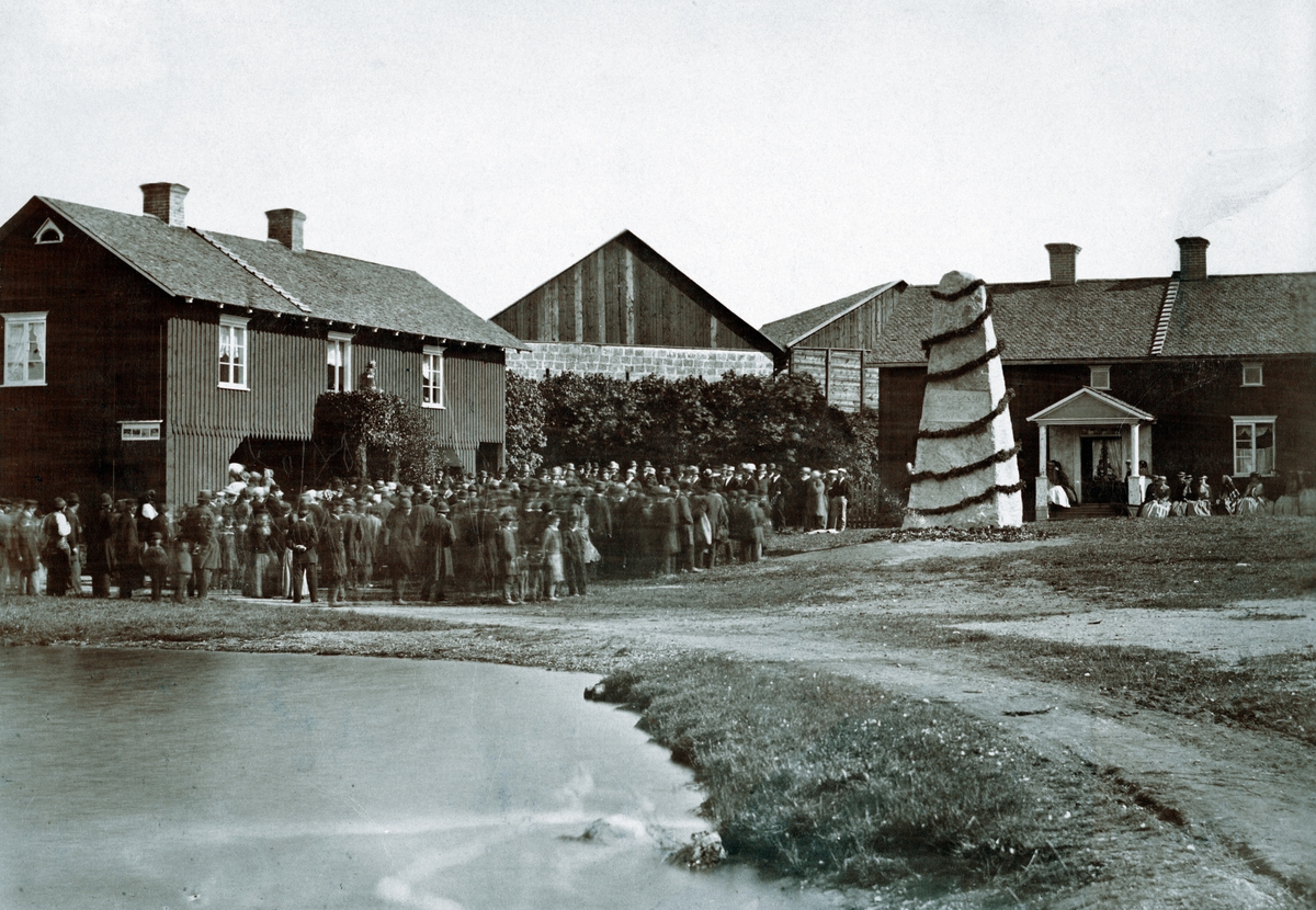 Bilden tagen 3 september 1867, då bygdens folk lät resa den jättelika minnesstenen på gårdsplanen för att hedra John Ericsson.