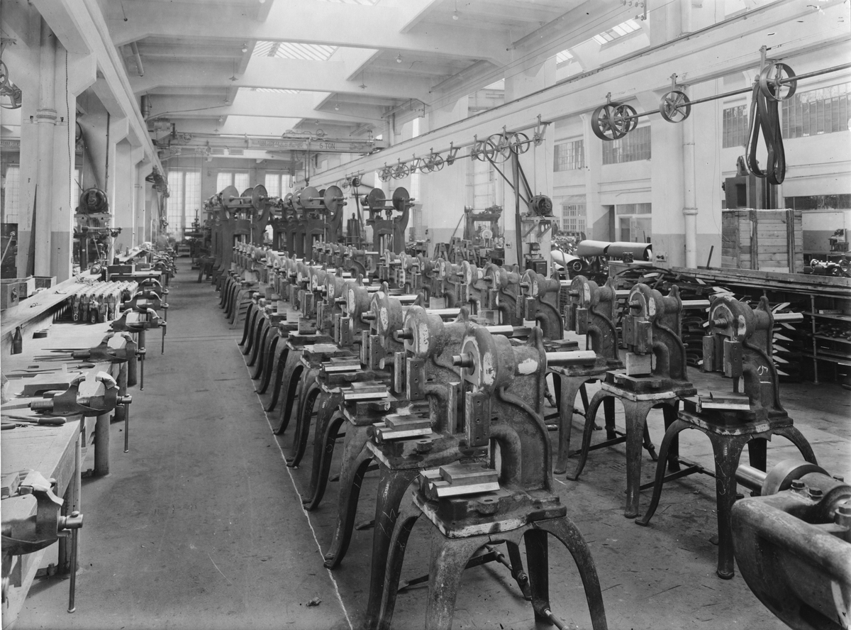 Monteringshall för pressar, Munktells Mekaniska Verkstad i Eskilstuna.