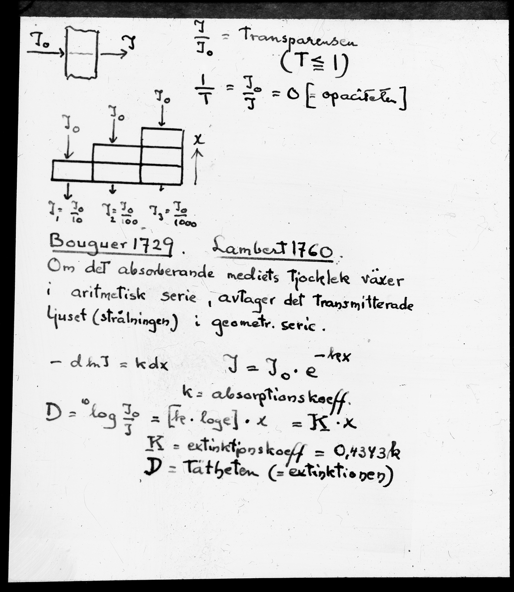 Skioptikonbild från Institutionen för fotografi vid Kungliga Tekniska Högskolan. Använd av professor Helmer Bäckström som föreläsningsmaterial. Bäckström var Sveriges första professor i fotografi vid Kungliga Tekniska Högskolan i Stockholm 1948-1958.