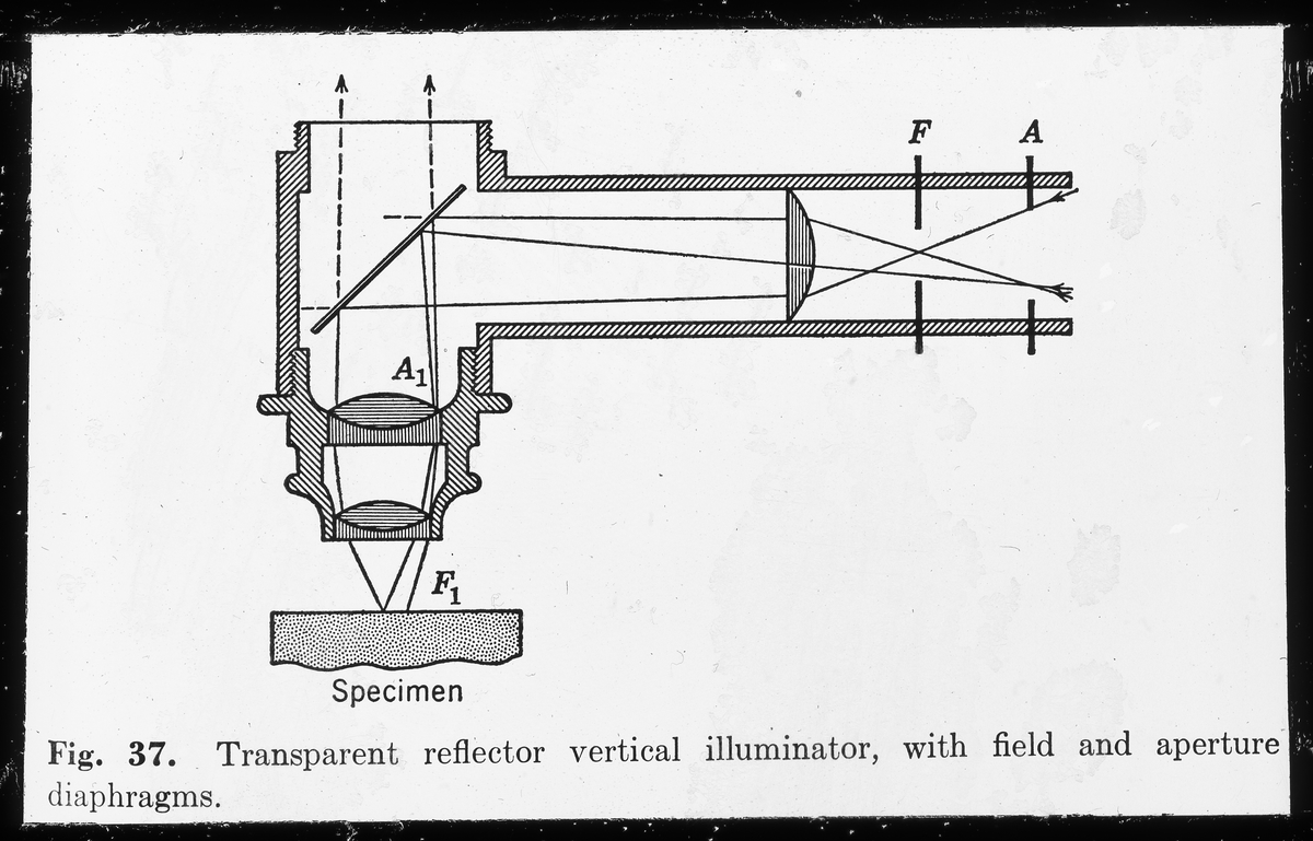 Trasparent reflektor vertikal belysning, med fält och bländare membran.