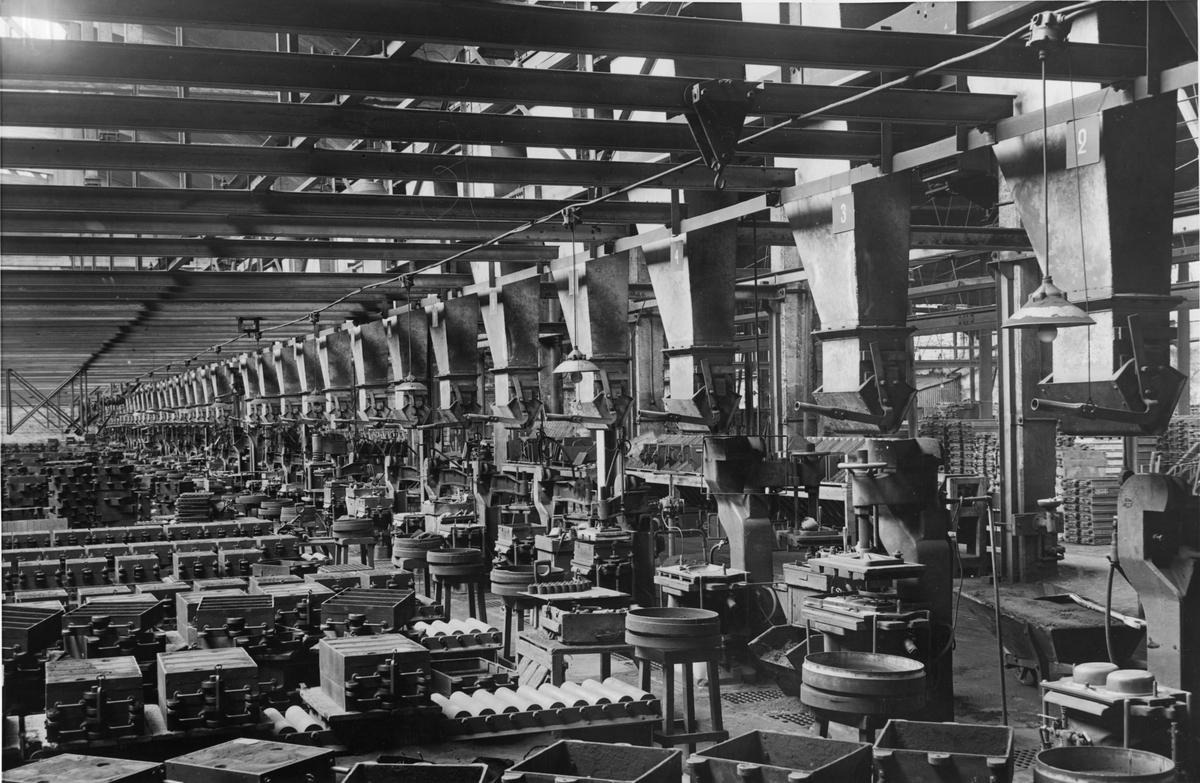 Husqvarna Vapenfabriks AB. Gjuteriet med Zimmerman-formmaskiner.