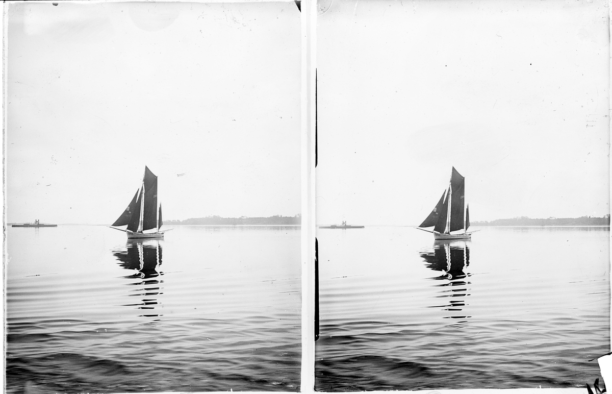 Stereonegativ med motiv av segelbåt.