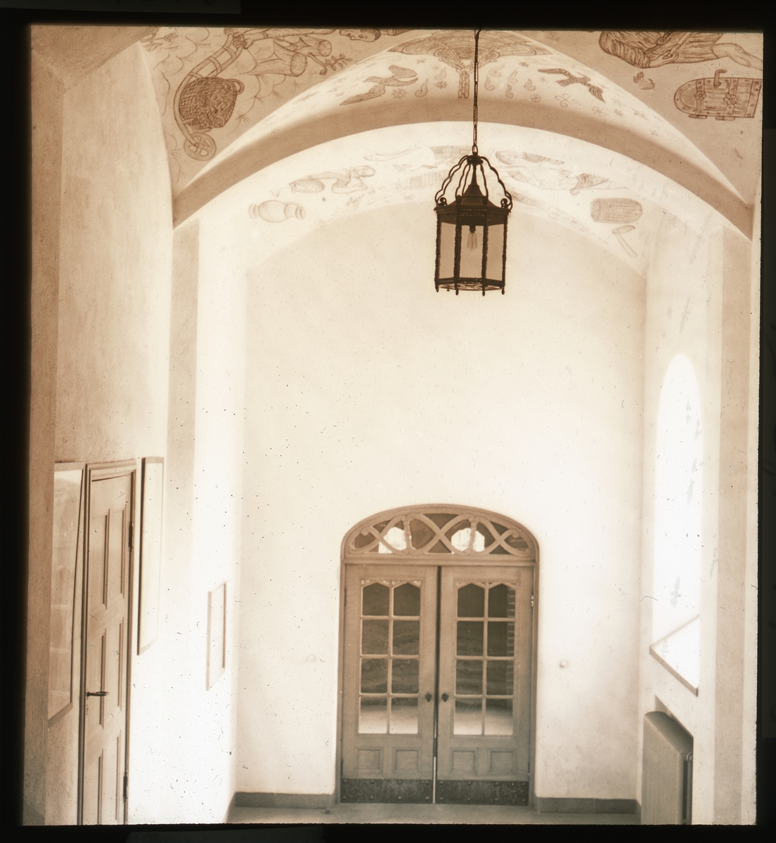Skioptikonbild från institutionen för fotografi vid Kungliga Tekniska Högskolan. Använd av professor Helmer Bäckström som undervisningsmaterial. Bäckström var Sveriges förste professor i fotografi vid Kungliga Tekniska Högskolan 1948-1958. Trapphus. På bilden står skrivet: direkt guldtoning (för mer text se bilden). För mer info: Se Fotografisk Handbok av Helmer Bäckström. Natur och Kultur. Andra omarbetade upplagan 1958-59. Kap 75-79 Toningsförfaranden för silverbilder (sid 585 och följande).