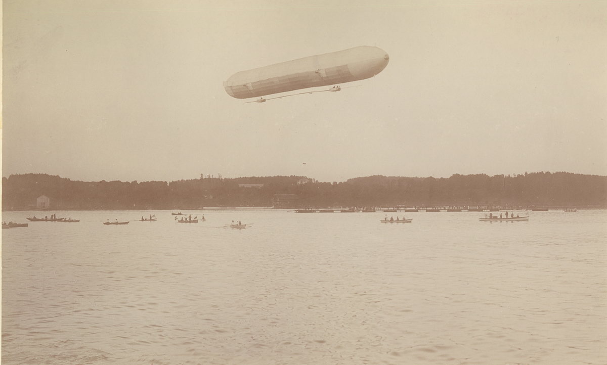 Ur album: Utländska Resan 1900 I. Greve Zeppelins luftskepp vid Friedrichshafen.