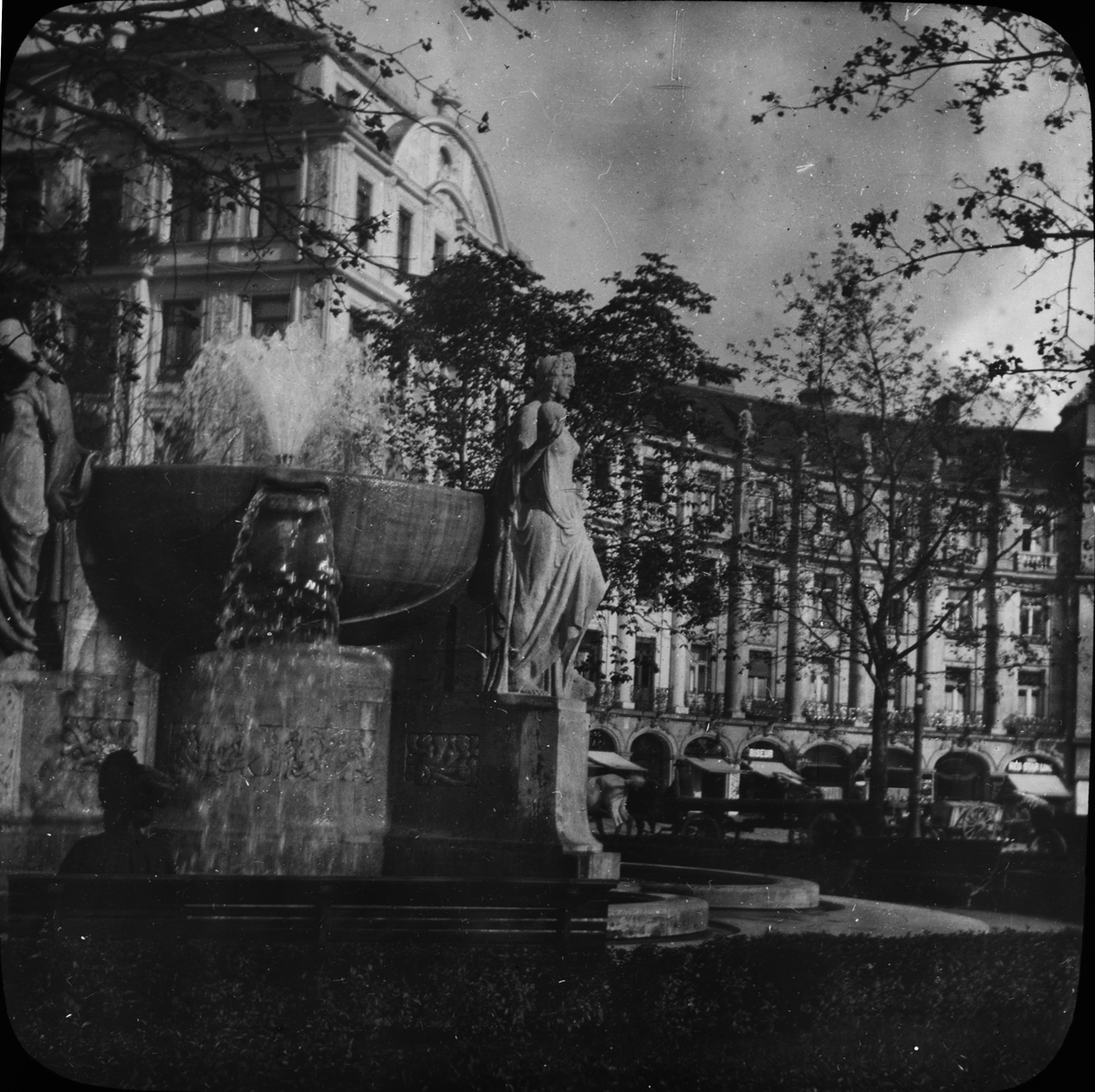 Skioptikonbild med motiv från torget Karlsplatz i München.