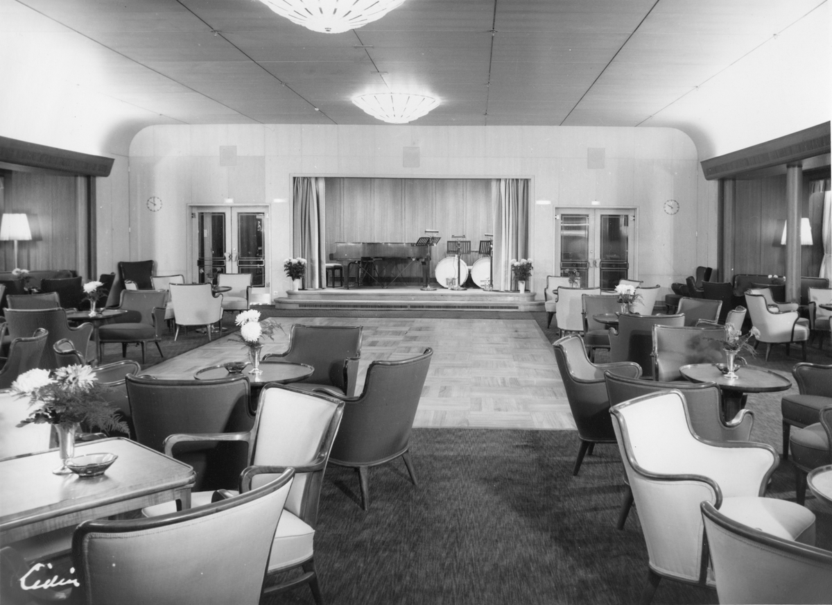 Salong ombord på fartyg vid Svenska Amerika Linien.