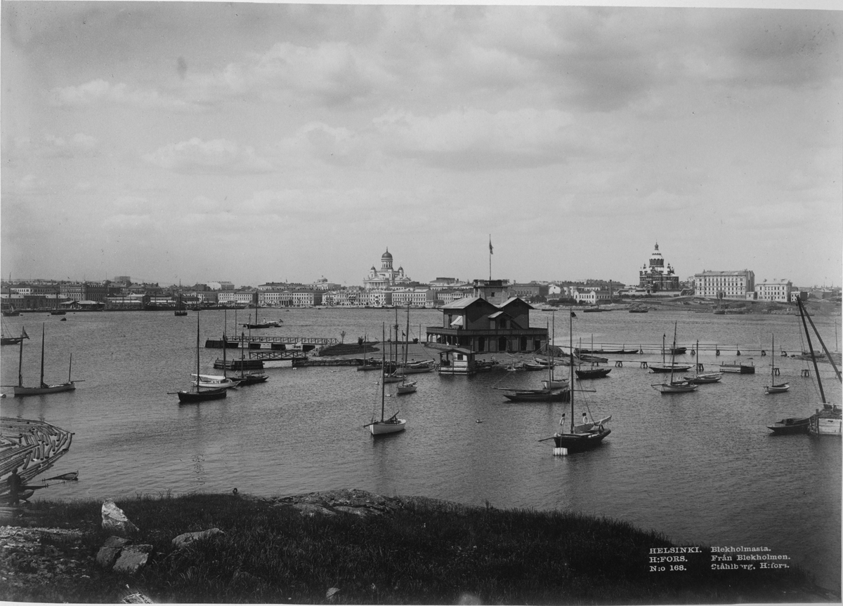 Blekholmen, gästhamn i Helsingfors. Med fotografiet erhöll fotografen pris i Paris 1892.