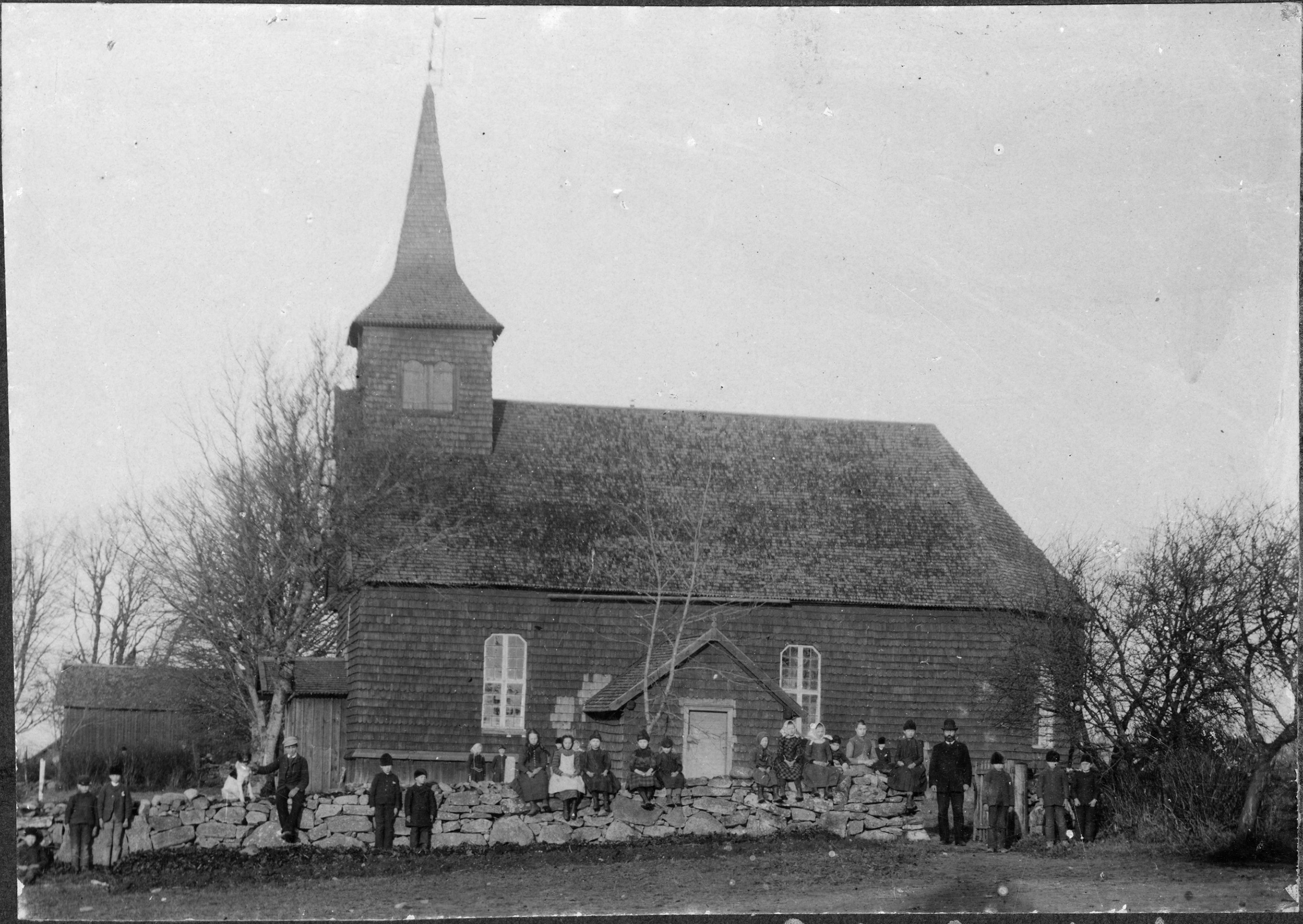 Kyrkan från syd. Uppförd i knuttimringsteknik och från 1400-talet.