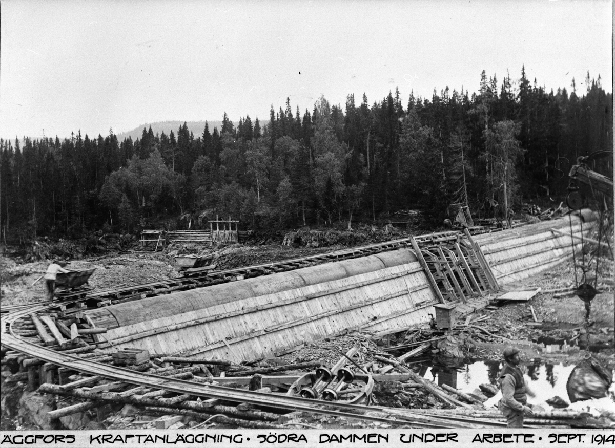 Titel: Byggherre: Byggnadsaktiebolaget Contractor, Stockholm. Södra dammen under arbete.