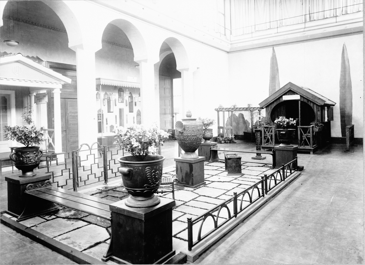 Byggnad och urnor.