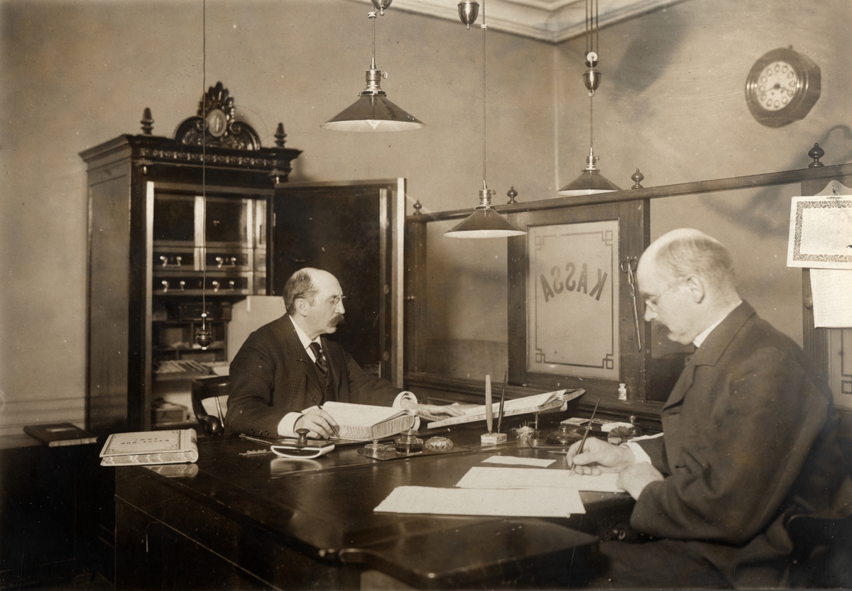 Fotografi ur album tillhörande Ester Holmberg, anställd vid Telegrafstyrelsens statistikavdelning 1902. Fotografierna troligen tagna 1907. Revisor Rubenson längst bak.