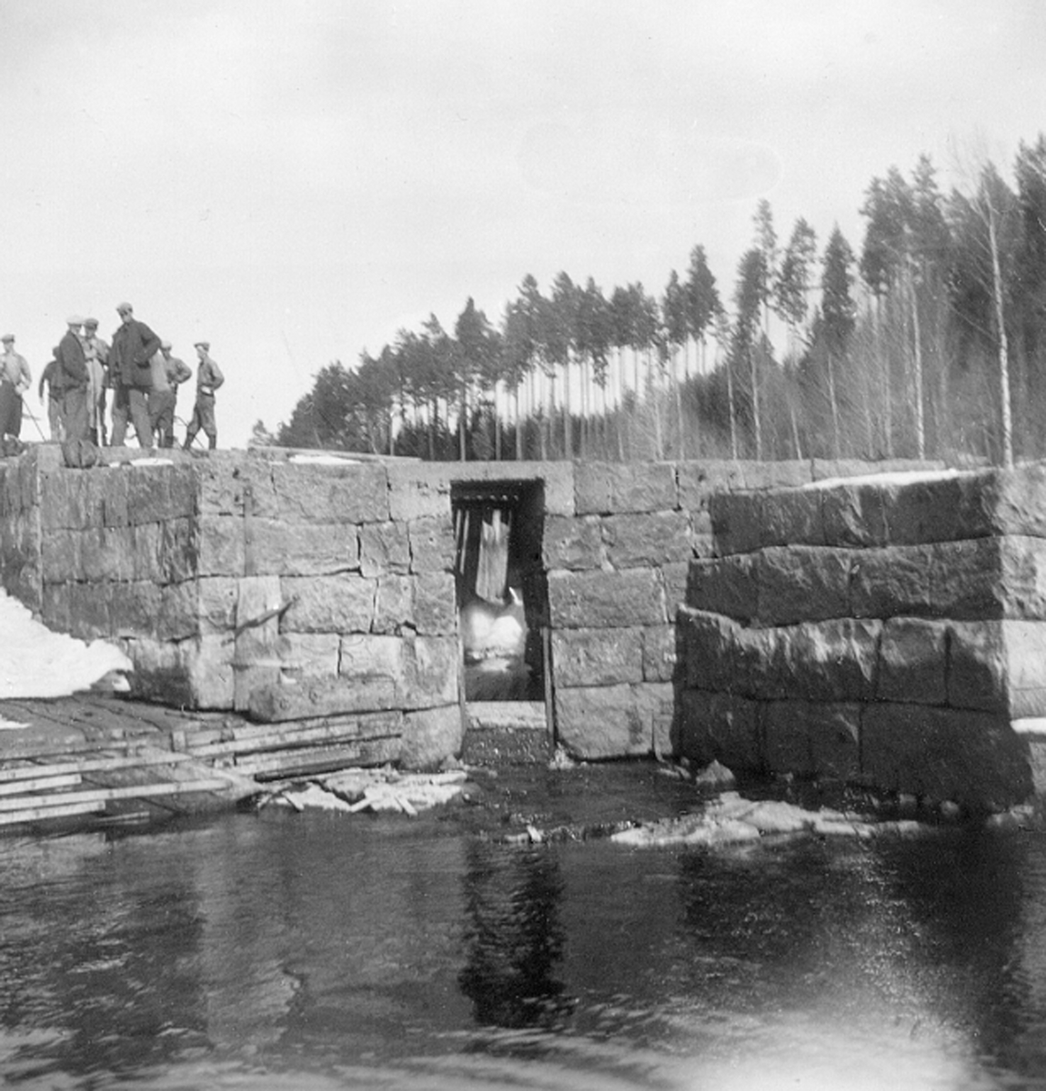 Titel: Lottefors kraftstation. Damm och byggarbetsplats.