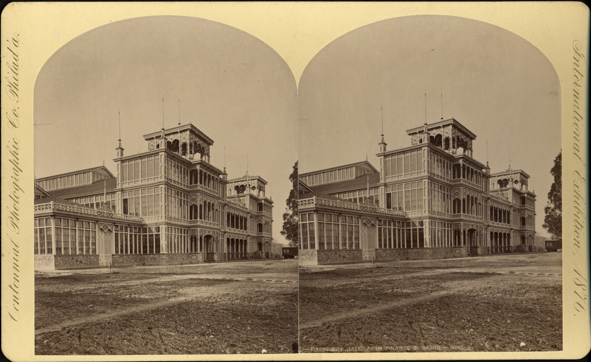 Stereobild av maskinhallen, Centennial International Exhibition 1876.