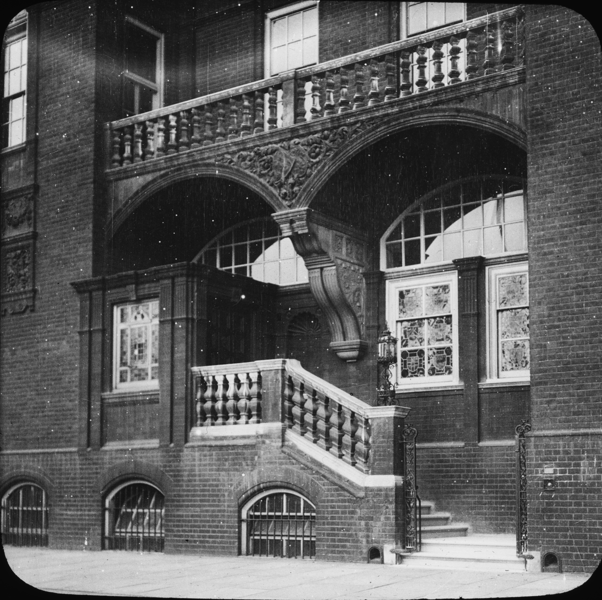 Skioptikonbild med motiv från Sigurd Curmans resor i Europa. Okänd byggnad, London.
