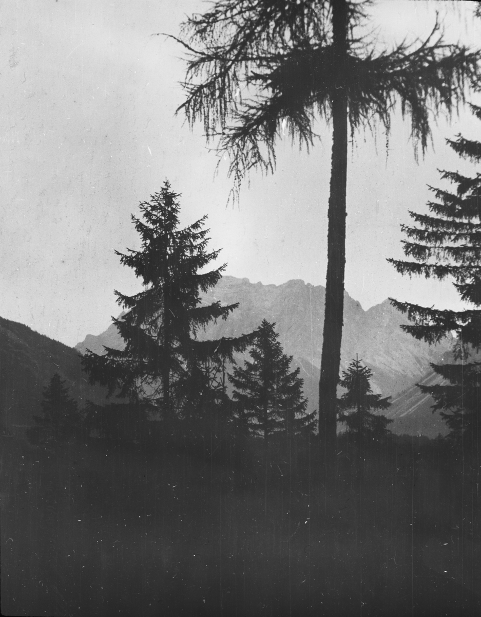 Skioptikonbild med motiv av berget Zugspize, på gränsen mellan Tyskland och Österrike.