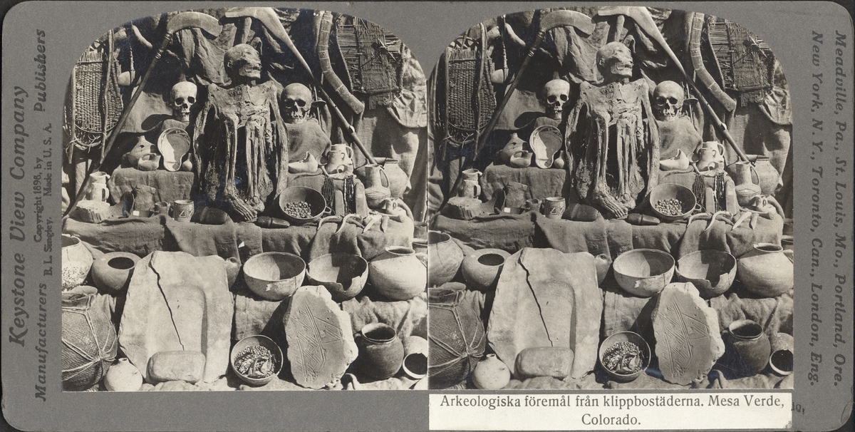 Stereobild av arkeologiska föremål från klippbostäderna Mesa Verde, Colorado.
