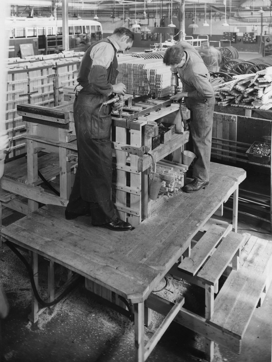 Sammanfogning av vagnskorg och sidostycken för droskkärra.
