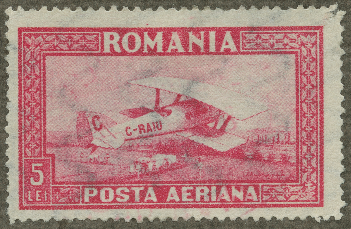 Frimärke från Rumänien, 1928. Motiv av Biplan för post -Kapt. C. G. Craiu:s flygplan-