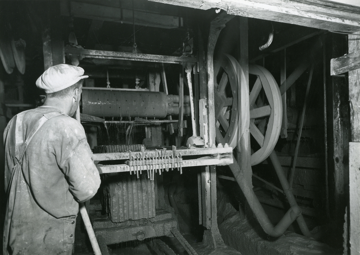 En stensåg av äldre modell i arbete.