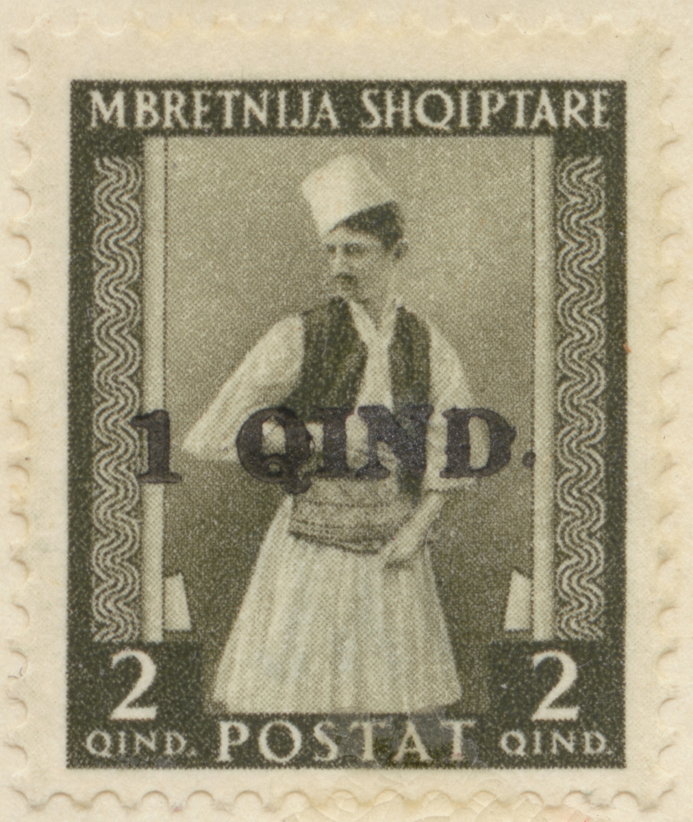 Frimärke från Albanien, 1939. Motiv av folkdräkt.