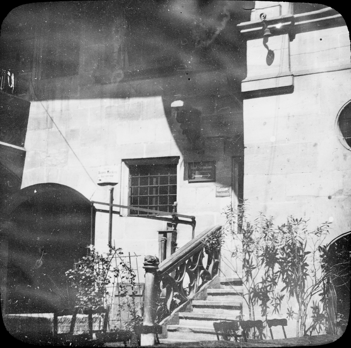 Skioptikonbild med motiv av okänt hus i Nürnberg.