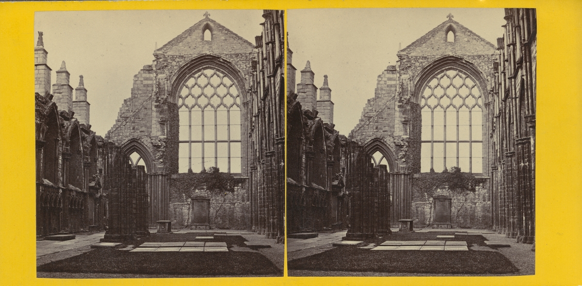 Stereobild med motiv av Holyrood Chapel, Edinburgh.