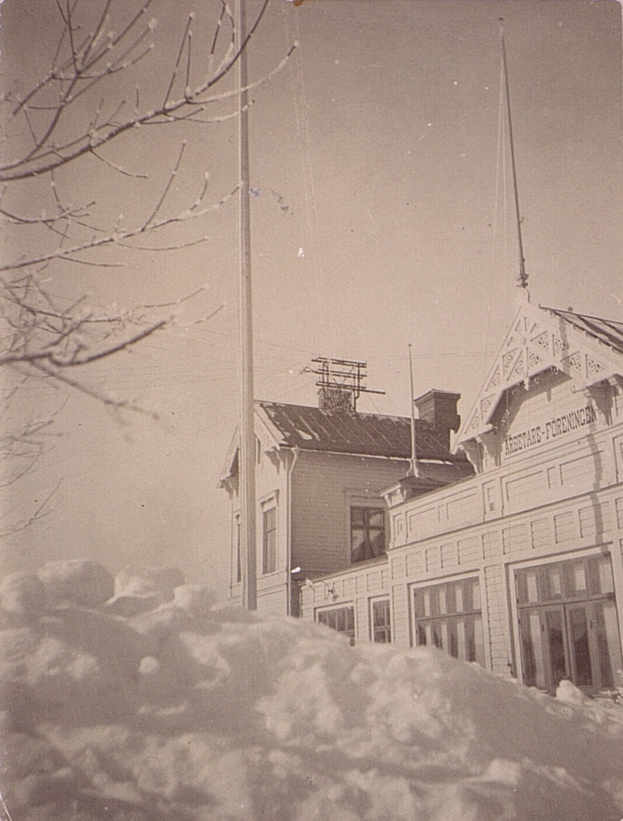 Härnösand telefonnät och stationer omkr. 1900 (Telefongalge på taket av byggnad).