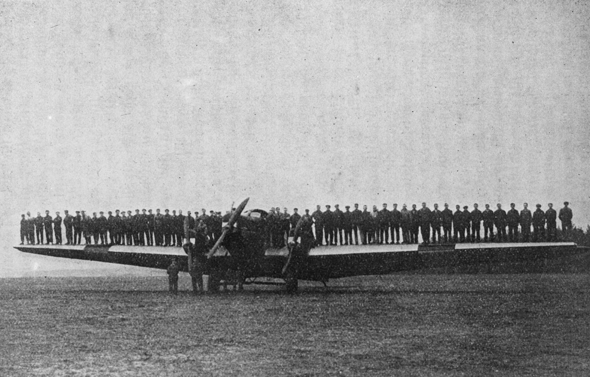 Skioptikonbild med motiv av belastningprov av flygplan.