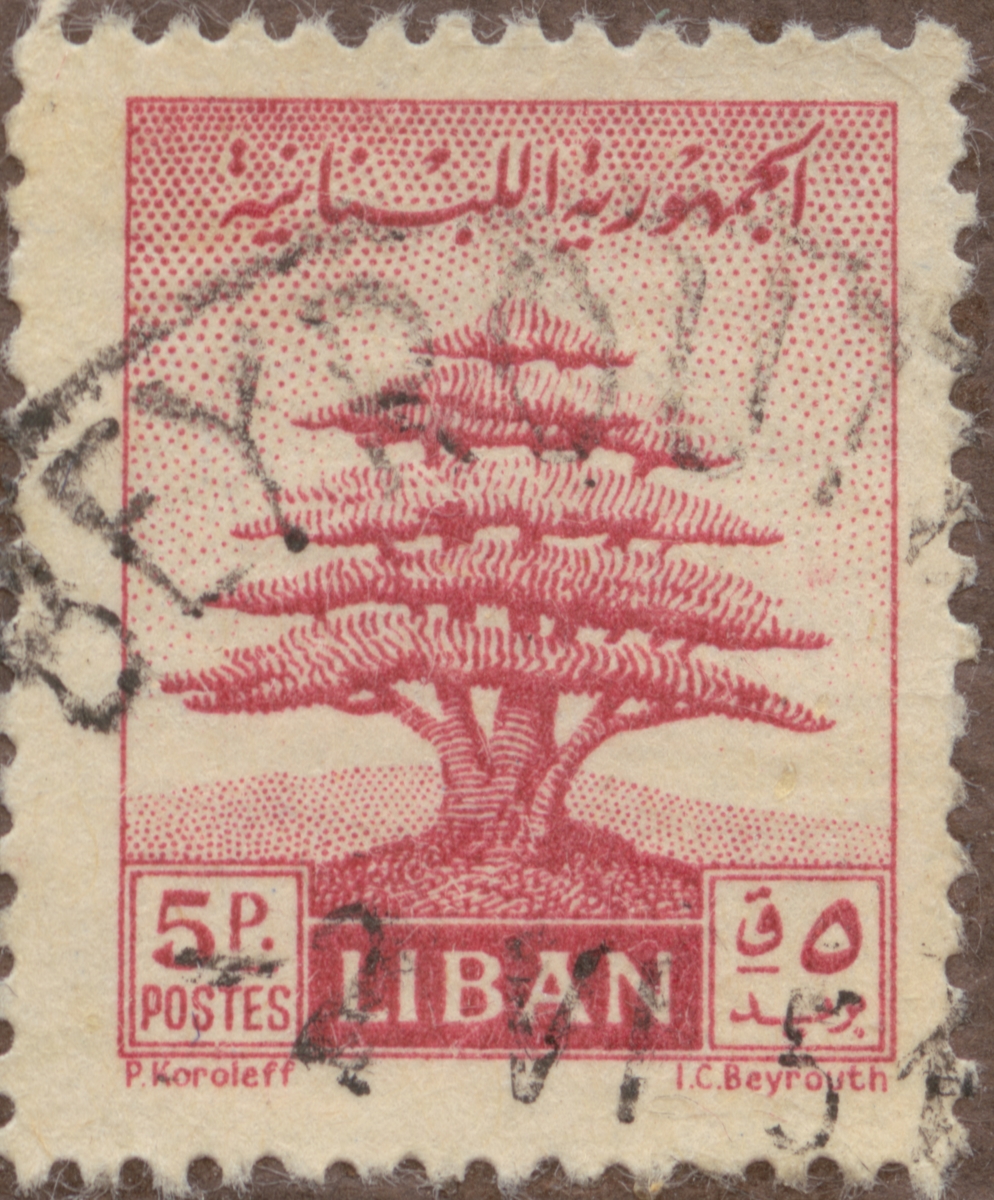 Frimärke från Libanon, 1952. Motiv av Ceder i Libanon.