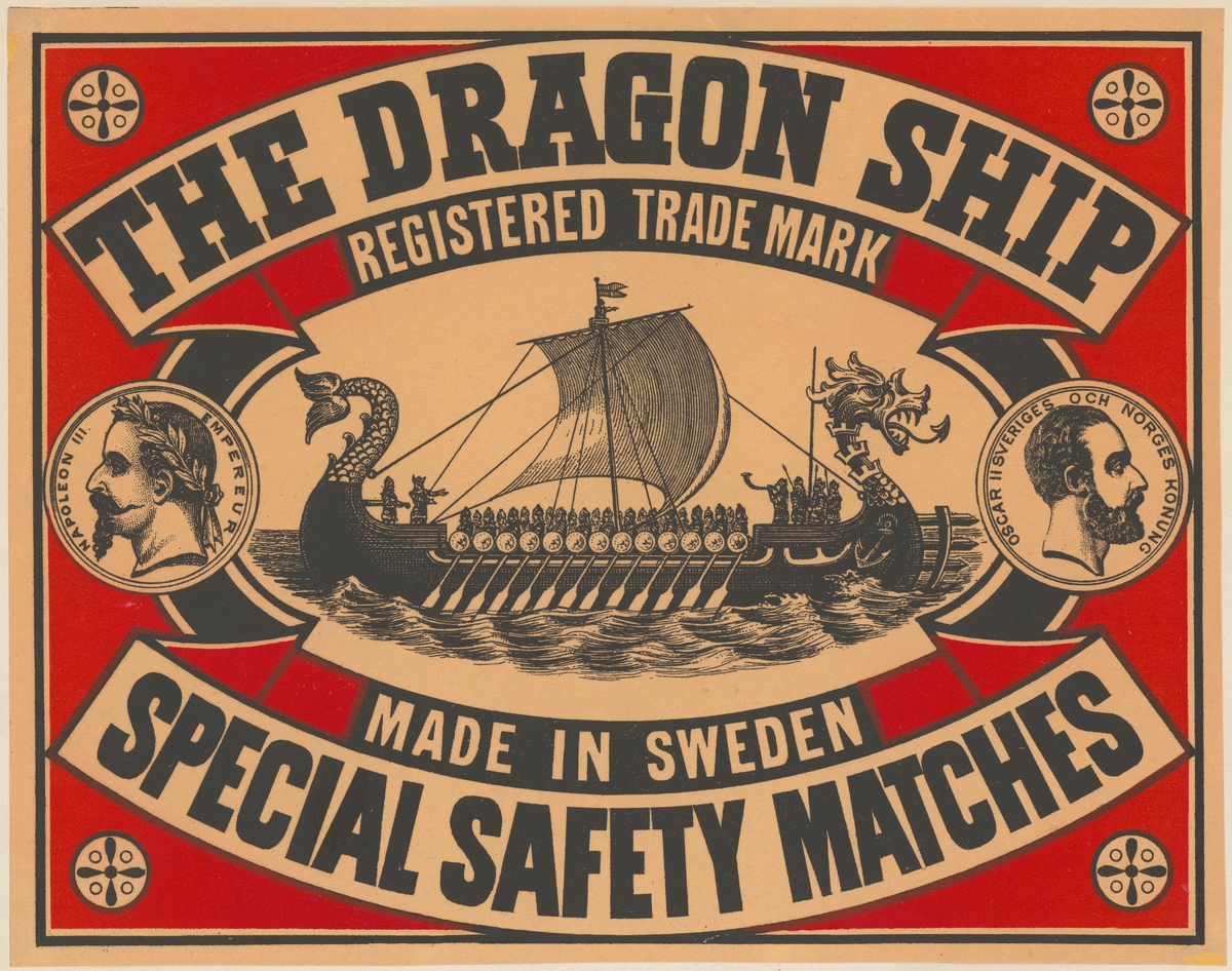 Etiketter för tändsticksaskar, från Svenskt Industri- och Handelsmuseum.