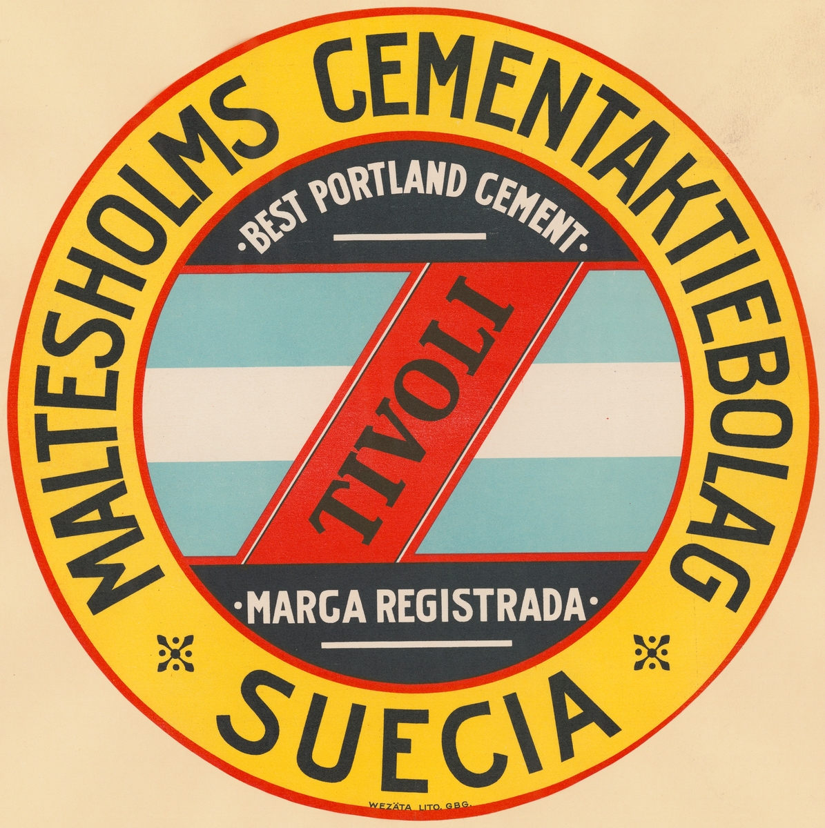 Fabriksmärke för cementpåsar. Maltesholms Cementaktiebolag. Tivoli. Best Portland Cement.